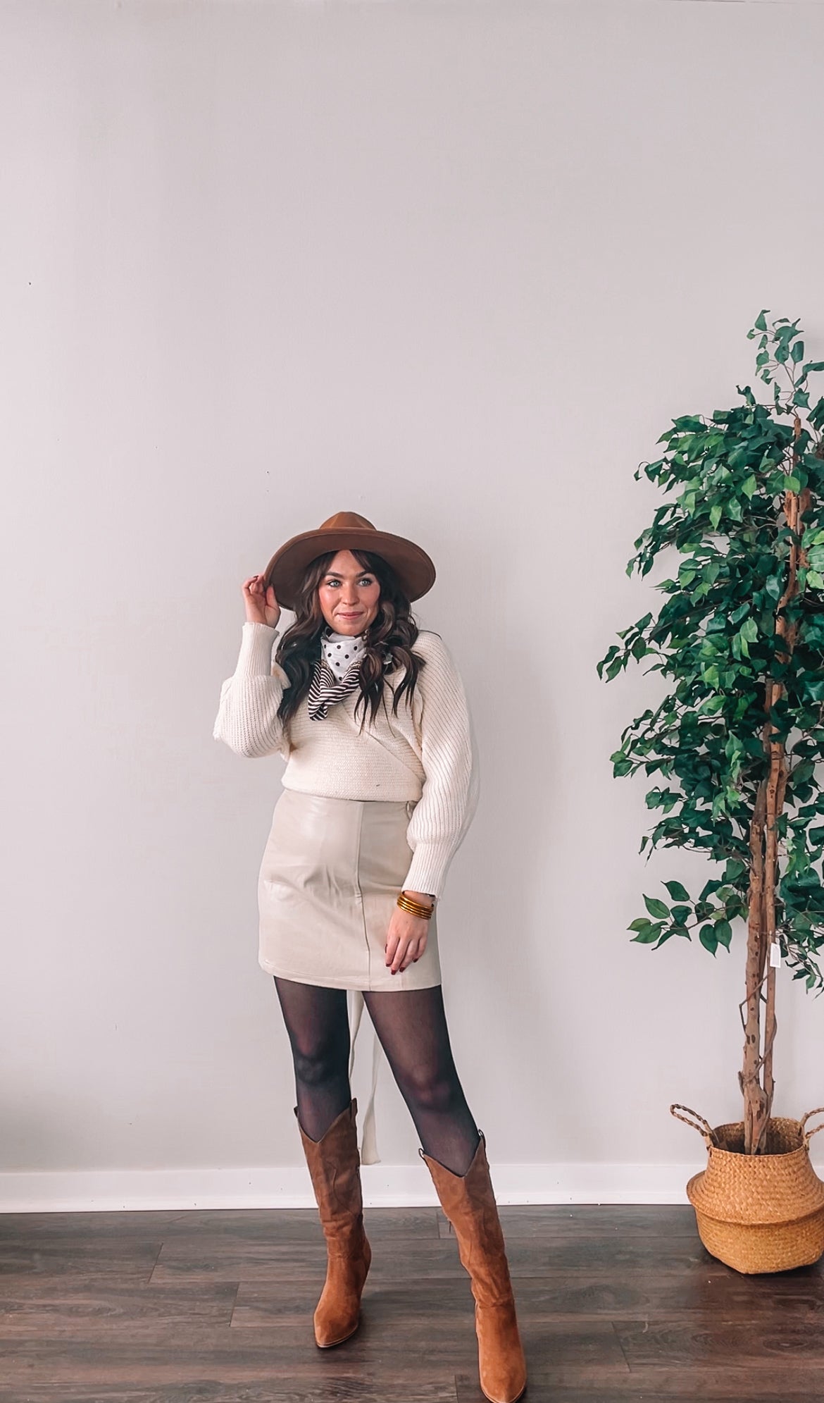 This pleater skirt is perfect to transition to spring with! Style it for winter with a sweater or for spring with a bodysuit!
